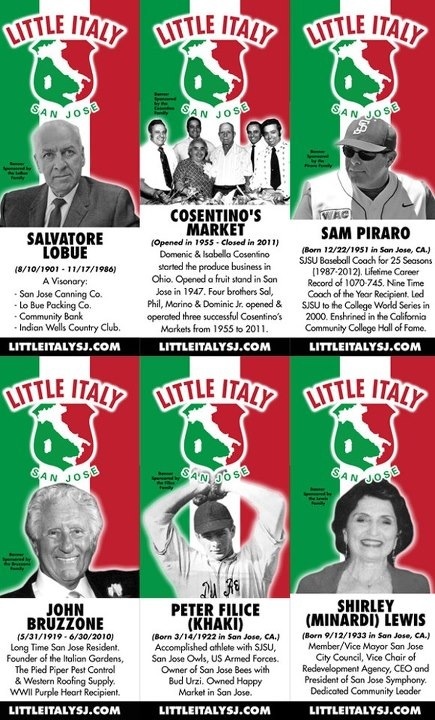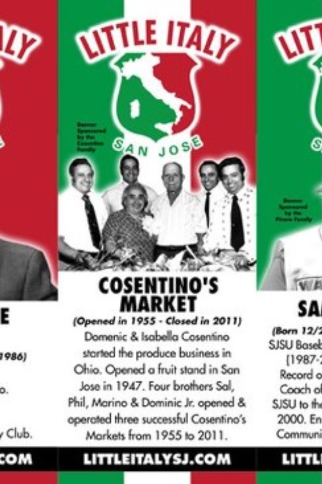 Italian, the Italian American Family Festa! The last few years of the Festa have taken place at and around the newly designated San Jose Little Italy near Downtown San Jose. This year the folks at SJ Little Italy added a very cool detail in and around the Family Festa grounds and Little Italy to celebrate and recognize notable Italian American’s who have helped shape Silicon Valley. These new details are banners hanging on light posts. Well, it looks like the Cosentino Family made the cut!